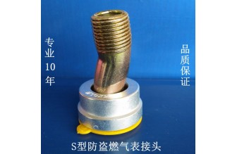 產(chǎn)品名稱:防盜S燃氣表接頭(專利產(chǎn)品) 產(chǎn)品編號:ZY-R002B 產(chǎn)品規(guī)格:M30*2-R1/2 材質(zhì):黃銅、鋼